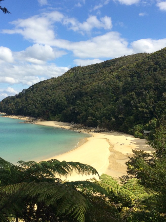 The following day was an early start to catch the ferry to the South Island. The Cook Strait (which separates the 2 main islands) is a narrow stretch of water, but the ferry journey is 3 and a half hours as the ferry has to negotiate its way through the Marlborough Sounds. We arrived in Picton at lunchtime and then drove through Nelson (doesn’t bear much resemblance to either the one in Lancashire or the one in south Wales) before heading to the next stop in Marahou. Marahou is on the edge of Abel Tasman National Park, and it’s not somewhere I’ve been on either of my previous 2 trips to NZ.