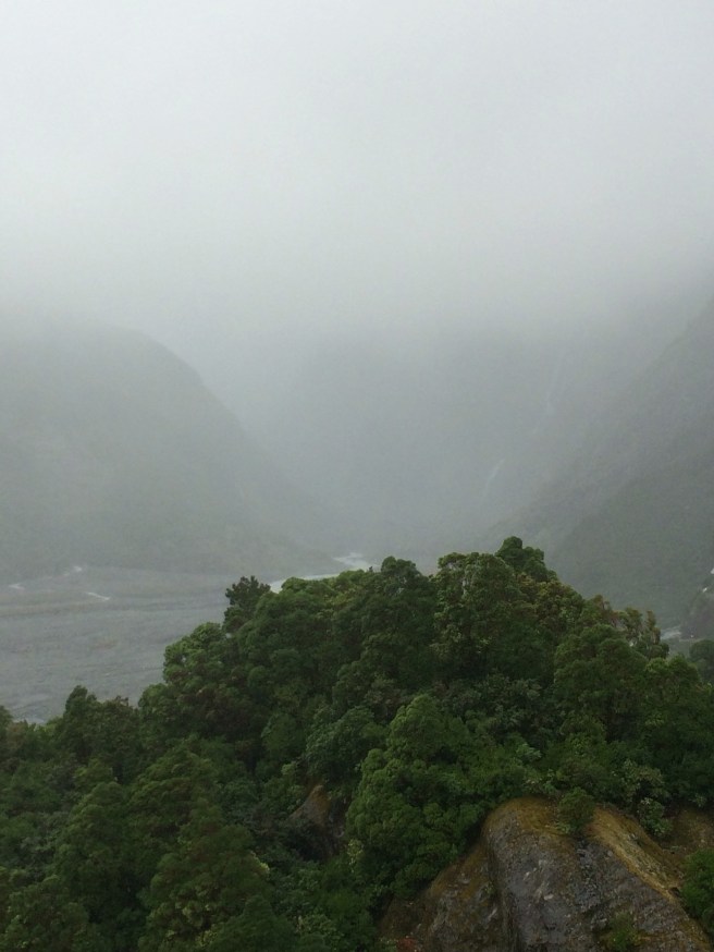 After stopping in a rainy Greymouth for supplies, we headed to Franz Josef Glacier where we were staying for 2 nights. One of the best things I’ve done previously in NZ was take a helicopter flight to the glacier and then spent a few hours walking on the glacier. Having done this before, I couldn’t really justify doing it again, and it turned out to be just as well because for the 2 nights we were in Franz Josef it absolutely poured down. Part of the town was flooded when the river burst its banks, and the whole town was issued with a ‘boil water’ notice. It made the national news here.