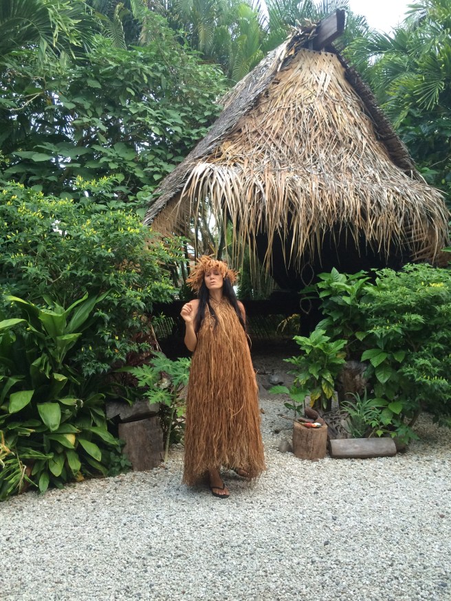 On the third evening in Rarotonga, I went to an ‘Island Night’ at Te Vara Nui. This is like a Cook Islands ‘village experience’. We had a 2 hour tour of the ‘village’ (several huts each with different themes) and learnt about the history of the Cook Islands, how it relates to the New Zealand Maori, about traditional foods and medicines, and traditional methods of fishing. It was interesting to see the similarities and differences to both New Zealand, and to Fiji as another Pacific Island.