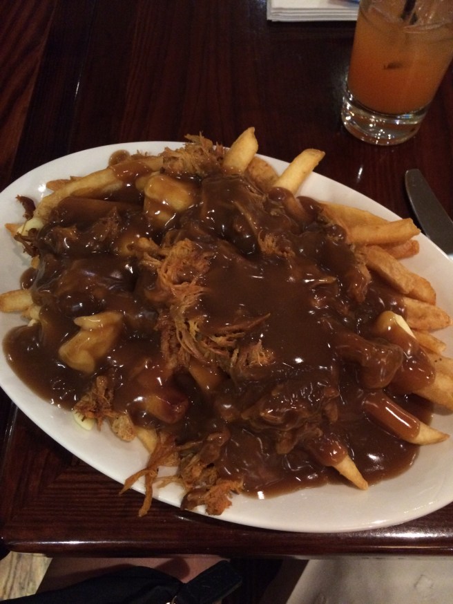 We then headed over the border to Canada for the afternoon. I had poutine for lunch – chips, gravy, cheese and pulled pork. This was a starter portion!!