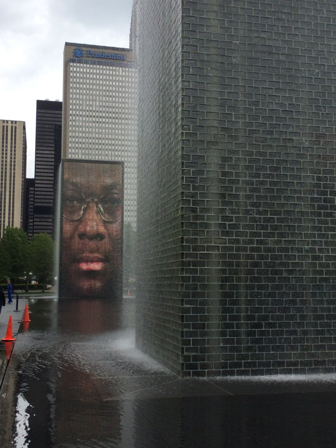And an art installation which has images of faces of people of Chicago.