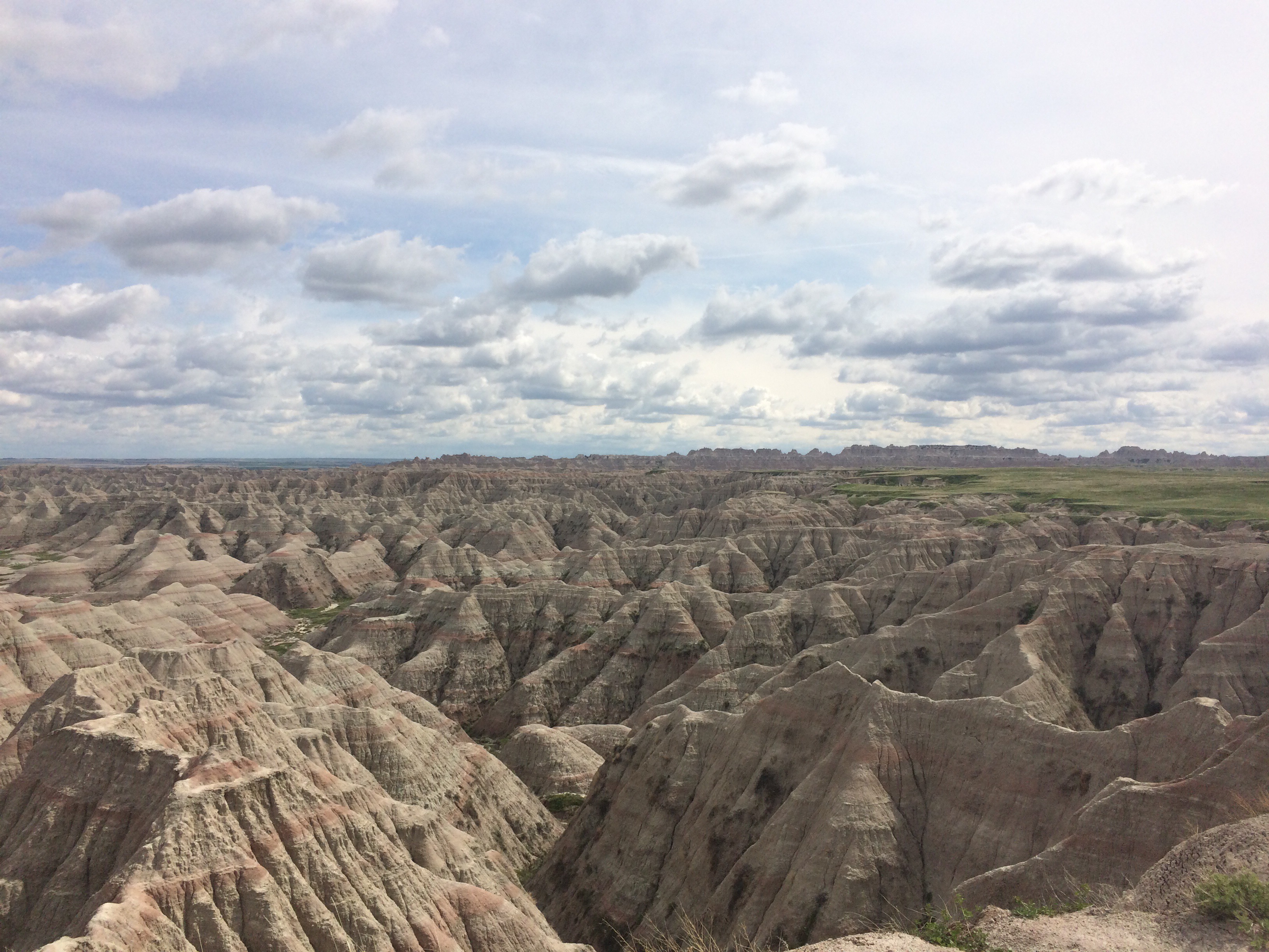 In the afternoon we arrived in the Badlands National Park. I’d heard of it before but wasn’t sure what to expect. It was absolutely spectacular. The scenery on the way was kinda barren. It was pretty flat with few trees, and then suddenly you’re met by these stone structures which look like they belong on the moon.