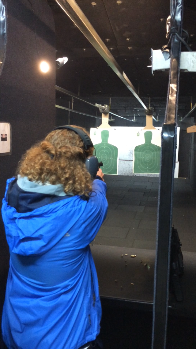 We went out for dinner in the town in the evening and then some of us went to a gun shop to try our hand at shooting. I am very definitely pro-gun-control but was intrigued. I shot a Luger and it was really good fun.
