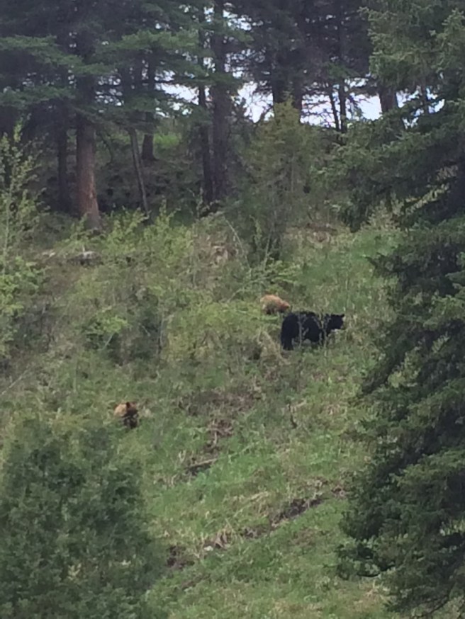 I forget the order we saw everything else in, but we also saw a pack of coyotes, marmots, antelope, mountain goats, and black bears with her cubs.