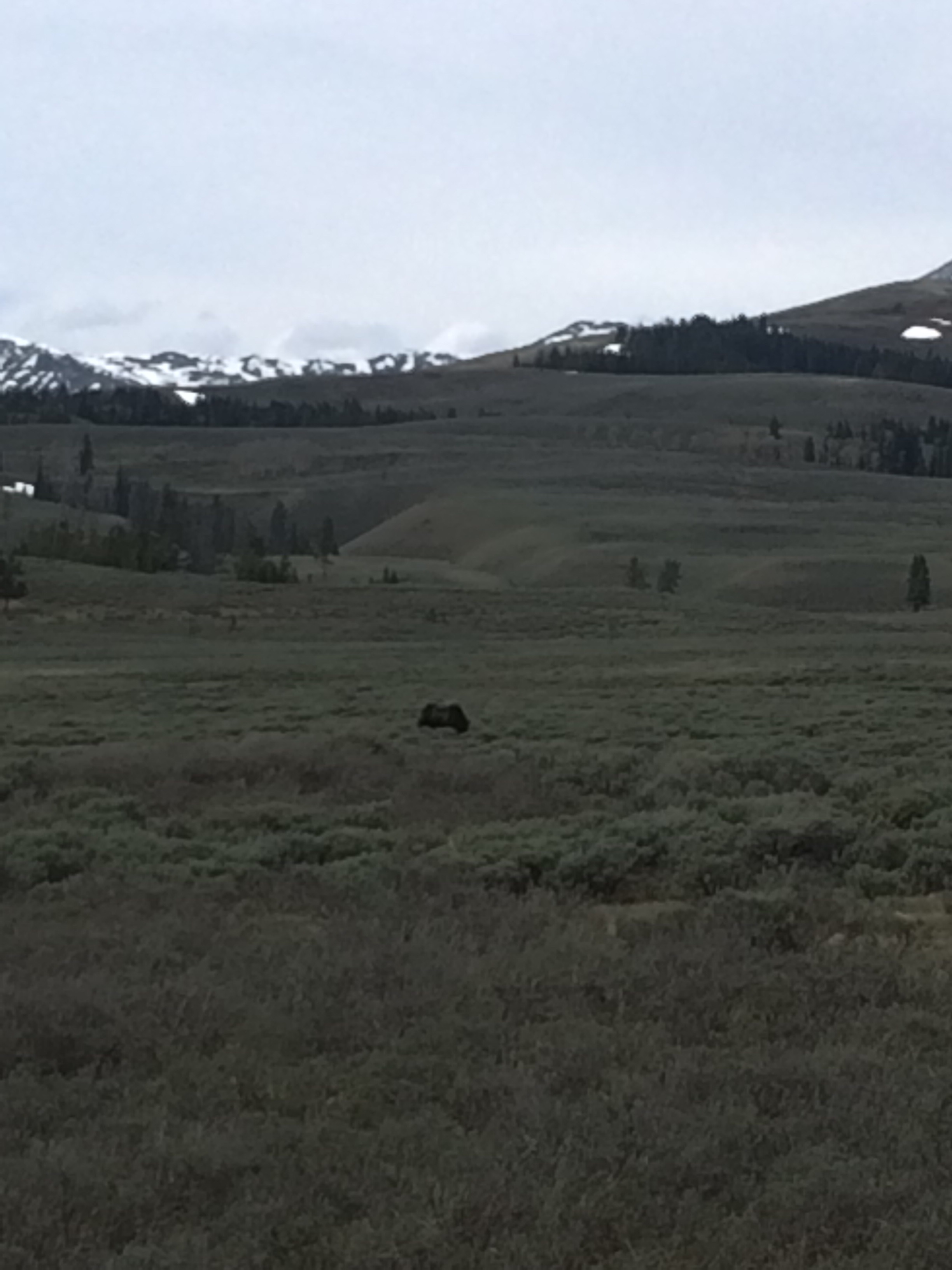 Our first wildlife spot came on the drive from Mammoth Hot Springs. A grizzly bear in the trees by the side of the road. Sam did a great job in spotting it from the van.