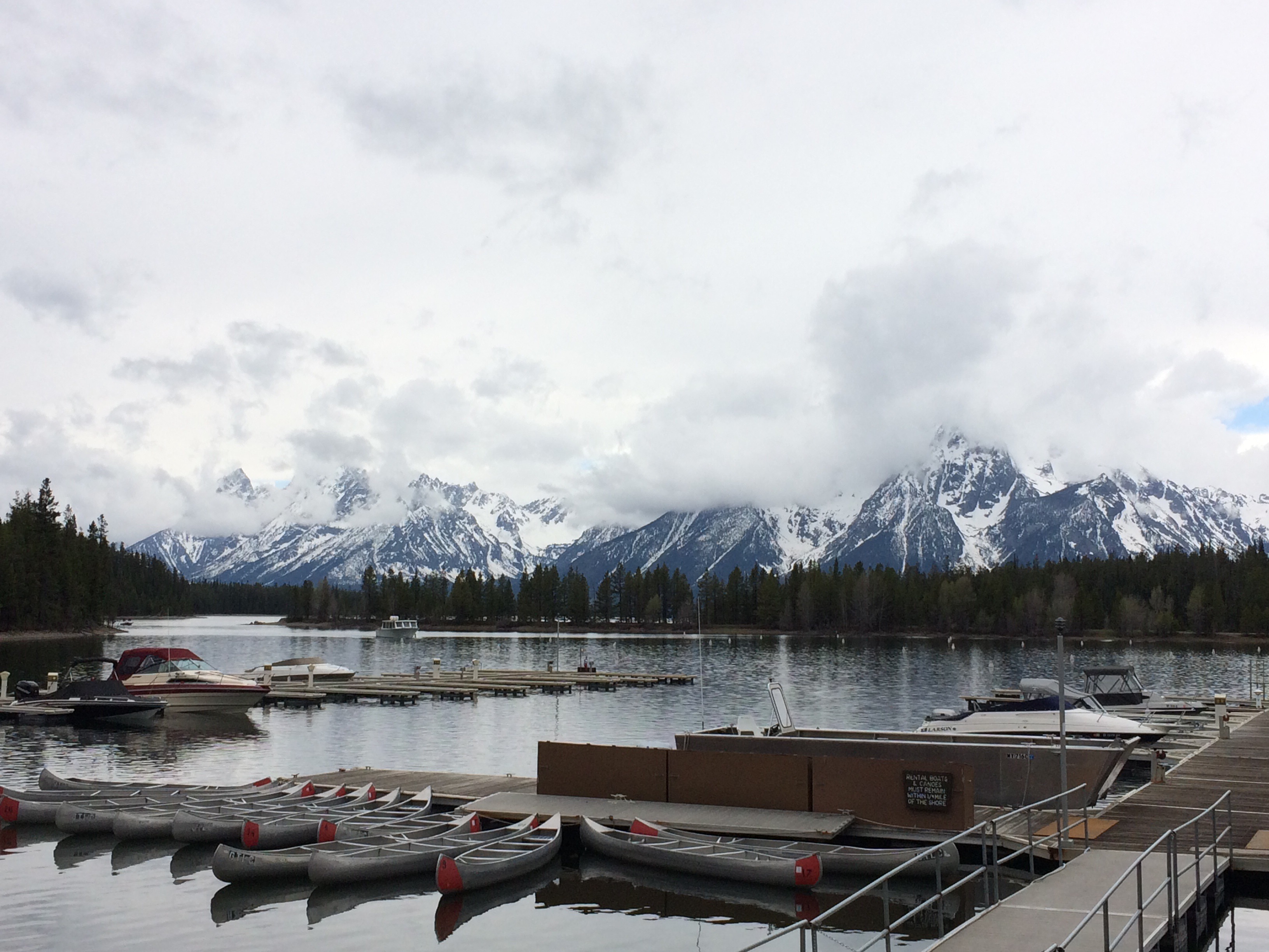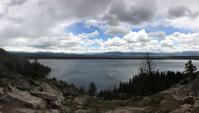 The next day was a free day for us. Myself and Liz decided to go for a hike in the Tetons to Inspiration Point above Jenny Lake. It was a good hiking day when we set off – sunny but cool. We could see the weather further up the mountain though and as we started climbing, the snow started falling. We timed our arrival at Inspiration Point to perfection. We got an awesome view when we got there, and then 5 minutes later it was properly snowing.