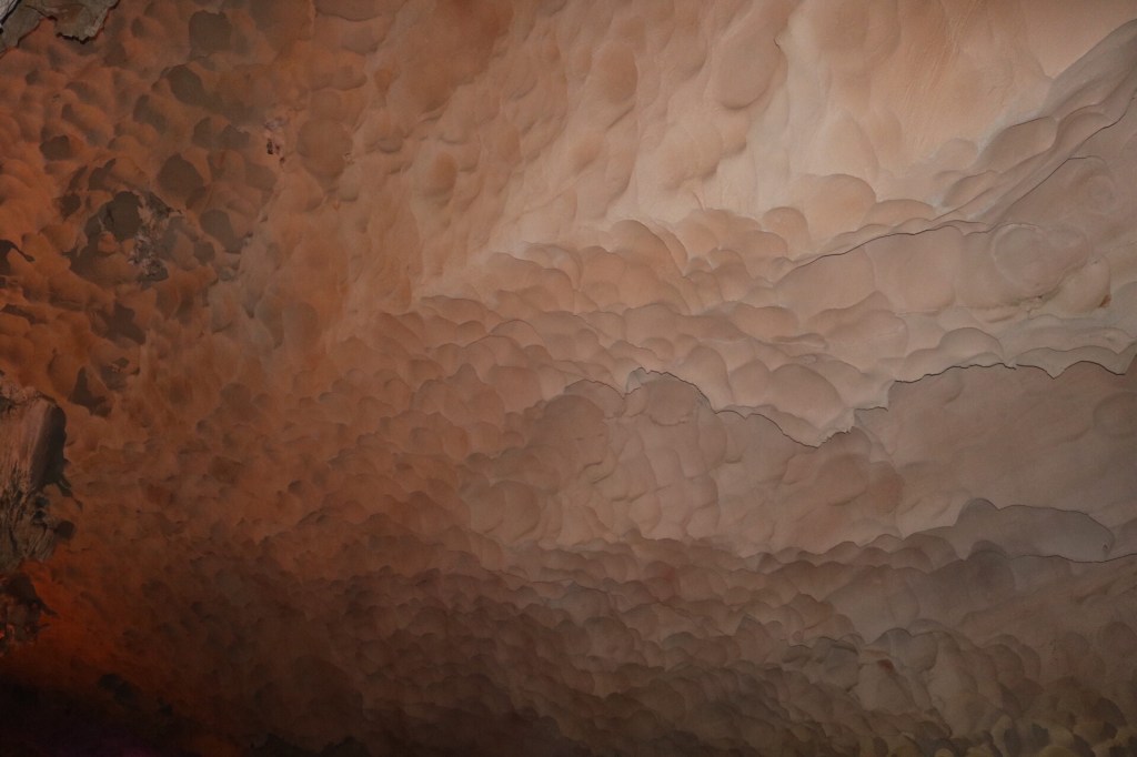 We had dinner on the boat, all freshly made on board and plate after plate of delicious food was served up. After enjoying the stars with a couple of drinks, I retreated to bed. Another early start the following morning with breakfast at 7am before we visited a Sung Sot Cave, the largest cave in Halong Bay, which had this amazing, wave-like ceiling.