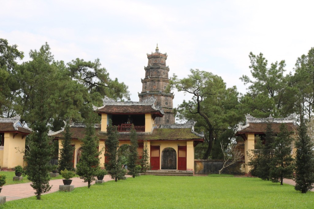 We arrived in Hue at 10.30am the next morning. It was noticeably hotter and more humid. Despite arriving early, we were able to check in to our hotel where I promptly showered before heading out for a quick wander before we went on our included trips in the afternoon. I ventured for a walk along the Perfume River before retreating to the air con ahead of our afternoon tours. Firstly we went to the Tien Mu Pagoda: