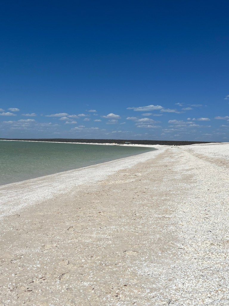 After lunch we continued north and arrived at Shell Beach. The shells all come from cockles which live in the waters and, as with every other beach I’ve seen in WA, the water is an incredible shade of blue