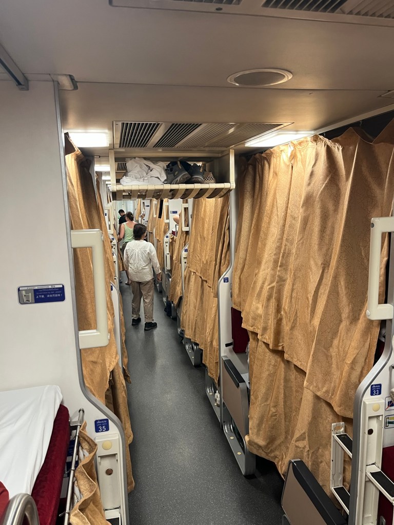 We then had a free afternoon before boarding an overnight train north to Chiang Mai. A new train station in Bangkok has been built in between my visits, the new station is very spacious and easy to navigate around. The train departed shortly after 7pm for the 12 hour journey north. The seats were very quickly changed into beds, one upper (which I was on) and one lower. There were also western style toilets which were a definite improvement on my previous overnight train here! I can’t say I got a good nights sleep though, the carriage lights were on all night and despite individual curtains, it didn’t do much to block the light.
