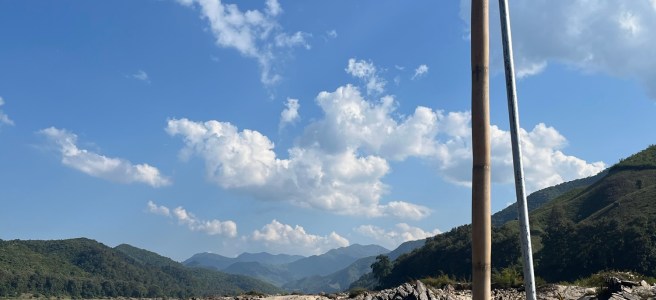 We sailed for perhaps 7 hours on the first day, to our overnight stop at a local Lao village. This was a real eye-opening experience into how people live along the river. There is no phone signal here, and whilst there are electricity wires and telegraph poles running through the village, it isn’t yet connected. Some of the houses have generators, cooking is done over an open fire, which also provides heat. There is a village water pump. The village is supported by G Adventures as a home stay stop on their tours, so there were sit-down western toilets, albeit with a large barrel of water beside for a manual flush…