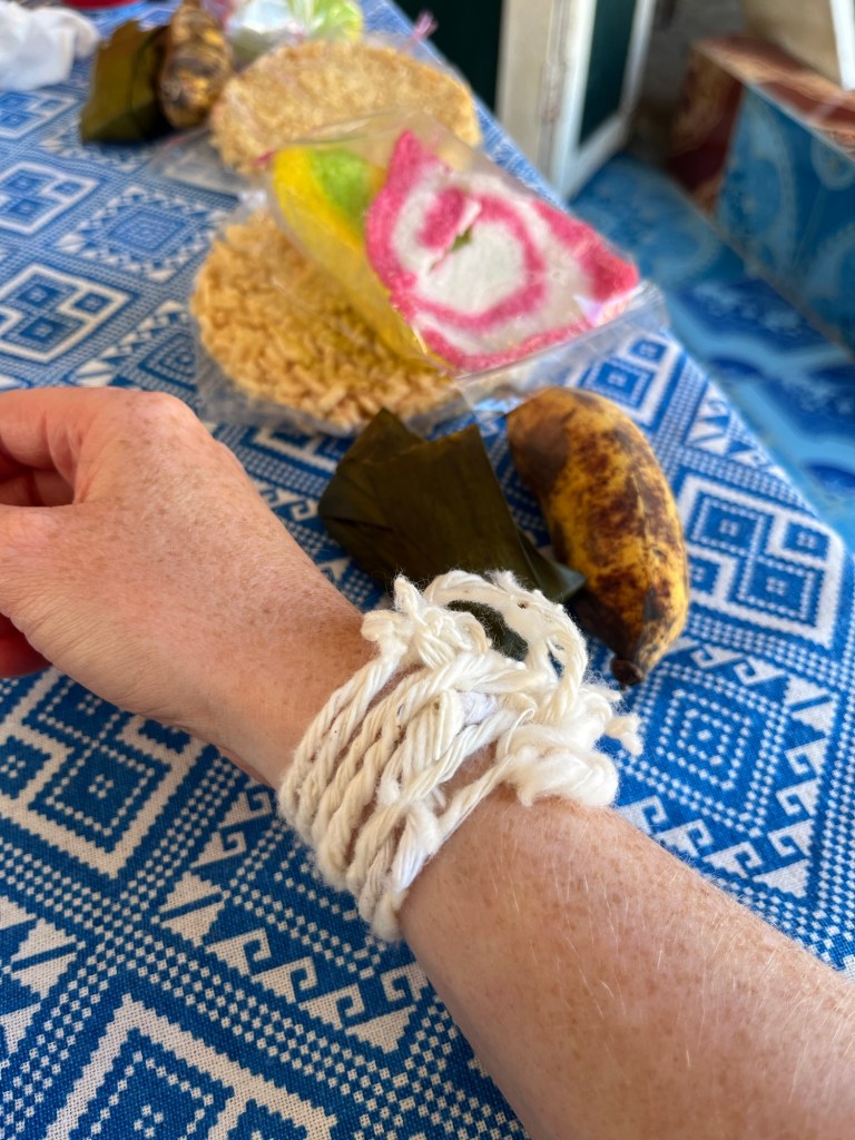 The next day we had a full day of activities starting with a tour of the ethnology museum to learn about some of the different peoples who live in Laos. We then drove out in a tuk tuk to a local community supported by G Adventures where we were received with a welcome ceremony and a number of cotton strings tied around our wrists, these provide good luck and fortune on travels and in theory shouldn’t be taken off before arriving home, but I’m not home for another 3 months…