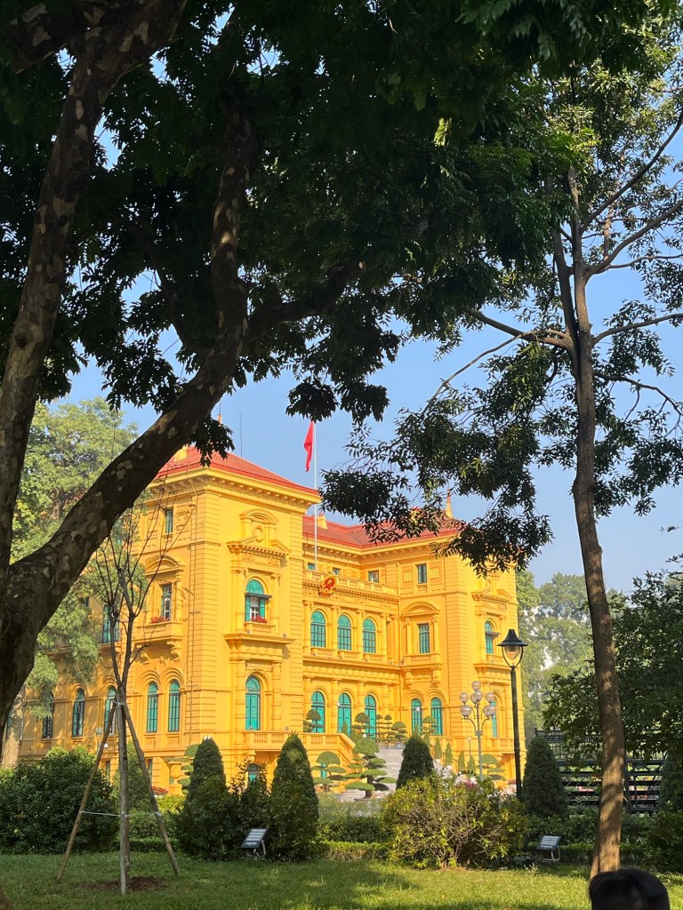 The next day started with a trip to the Ho Chi Minh Mausoleum. Despite his wishes to be cremated and scattered around Vietnam, he was embalmed for people to proceed past him every day. A bit of an odd experience if I’m perfectly honest. We also went to the palace which is alongside the mausoleum and saw the stilt house that was built for Ho Chi Minh as he preferred this than the grander presidential palace.