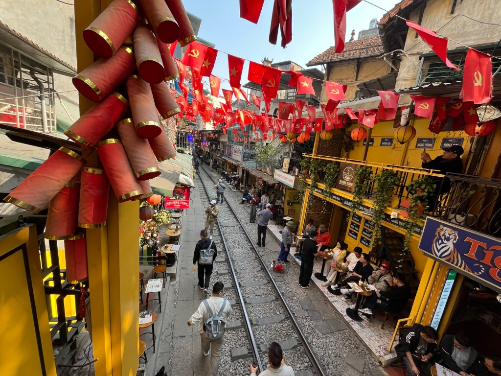 Afterwards we went to possibly one of the newer ‘sights’ in Hanoi, Train Street. This is a narrow street which the trains from Ga Ha Noi pass through on their way out of the city. It’s lined with cafes and coffee shops and has definitely become something for the ‘gram.