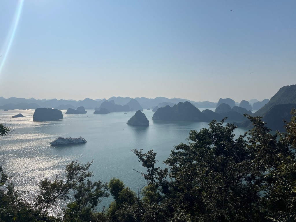 We sailed through the bay and past soaring limestone karsts on our way to Ti Top, an island with a viewpoint some 400 or so steps upwards. Much much busier than last time but still worth the views