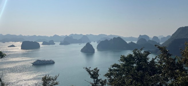 We sailed through the bay and past soaring limestone karsts on our way to Ti Top, an island with a viewpoint some 400 or so steps upwards. Much much busier than last time but still worth the views