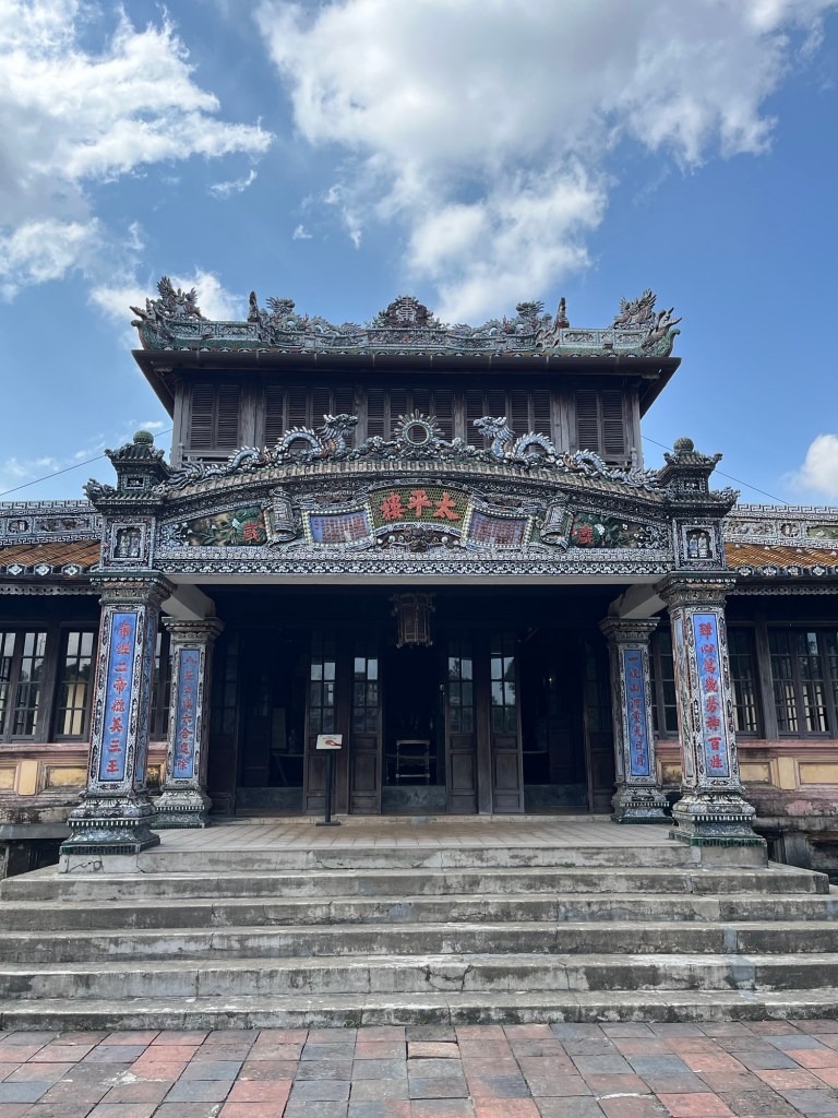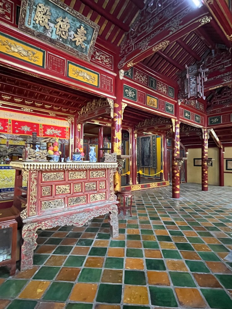 We arrived at the hotel too early for check in but early enough for breakfast. After breakfast we headed off to see the main sites in Hue, starting with the Citadel, a huge fortified imperial city built in the early 1800s. Large parts were destroyed during the Vietnam War and there was restoration work ongoing around the site. Indeed I didn’t remember some of the buildings we saw this time from my previous visit and the tour guide said that some of the restorations had been completed quite recently.