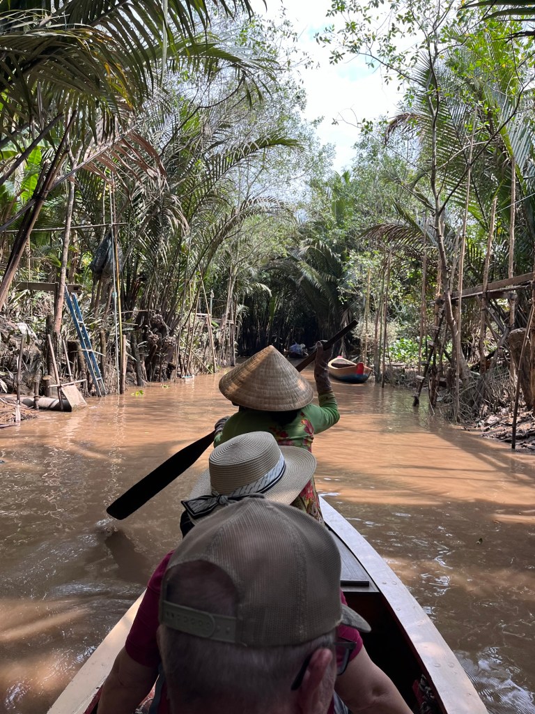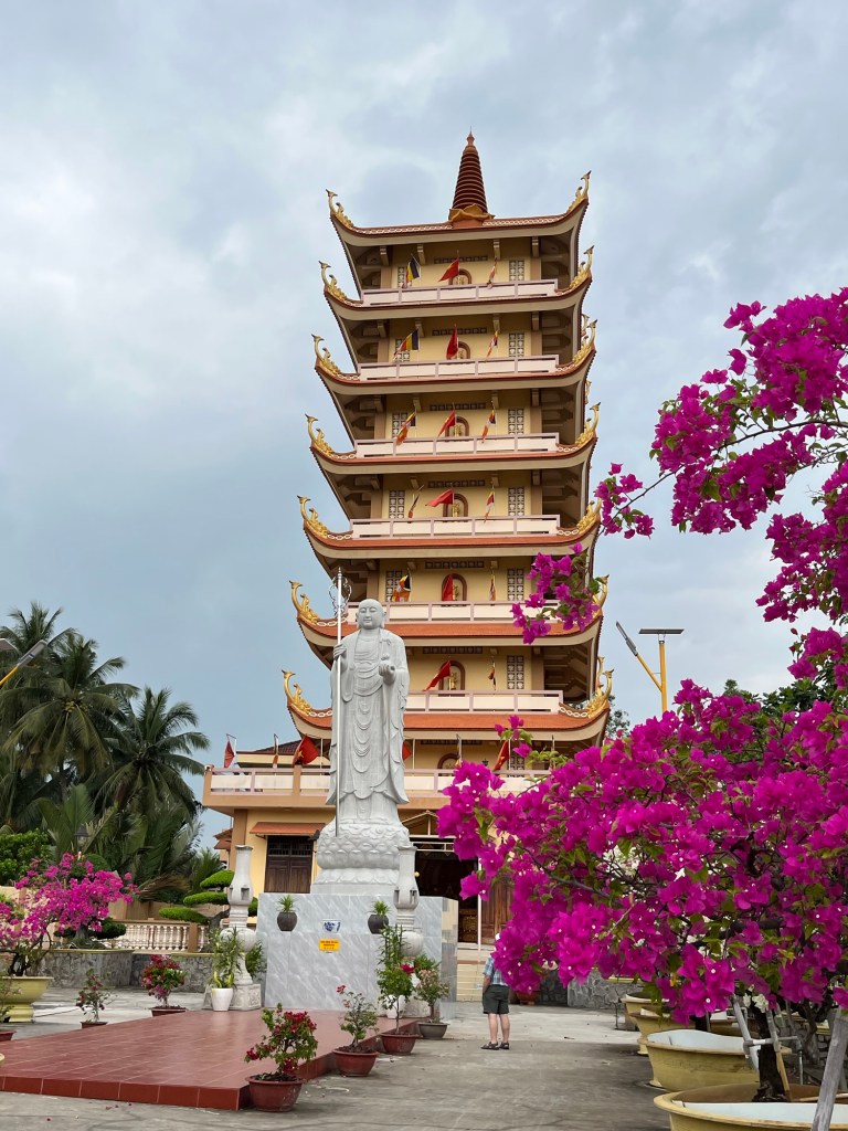 We also had a gentle narrowboat trip on the island before lunch. After returning to the mainland we visited Vinh Trang Pagoda which has a couple of quite large Buddhas in its grounds. As we left to drive back to the city, there were a few spots of rain in the air, which is the only rain I’ve seen so far in south east Asia.