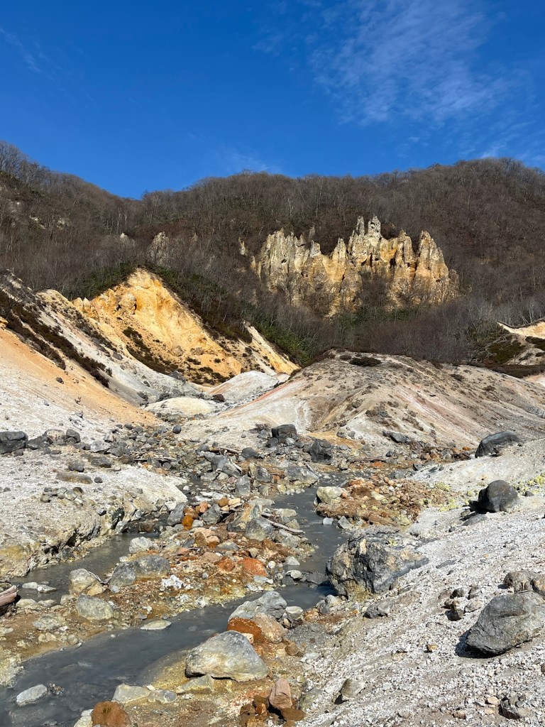 When we arrived, we walked to Hell Valley, which is a steaming landscape and the source of the hot water for the onsens in this town. The colours really reminded me of Wyoming.