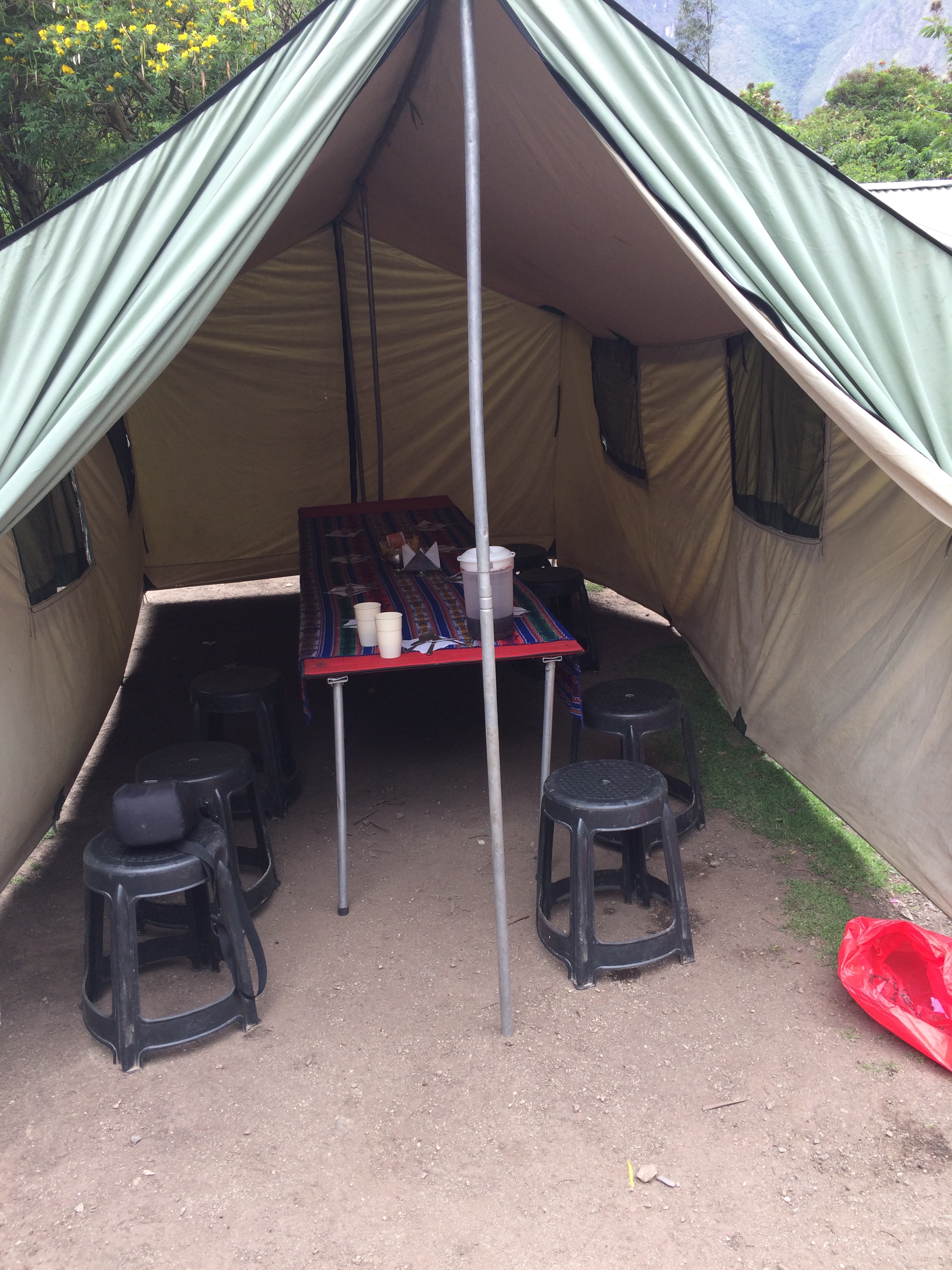 After lunch we headed off hiking again. You have to have a permit to hike the Inca Trail, which manages the numbers of people on there at any one time. This was arranged for me with the trip I’d booked. As you can imagine, this is a very popular hike so you would need to book well in advance. I’d booked this trip in February 2015 for a late November departure. We arrived into our first camp in the late afternoon. Our tents had already been set up by the porters so I took off my hiking boots and relaxed for a while before dinner.