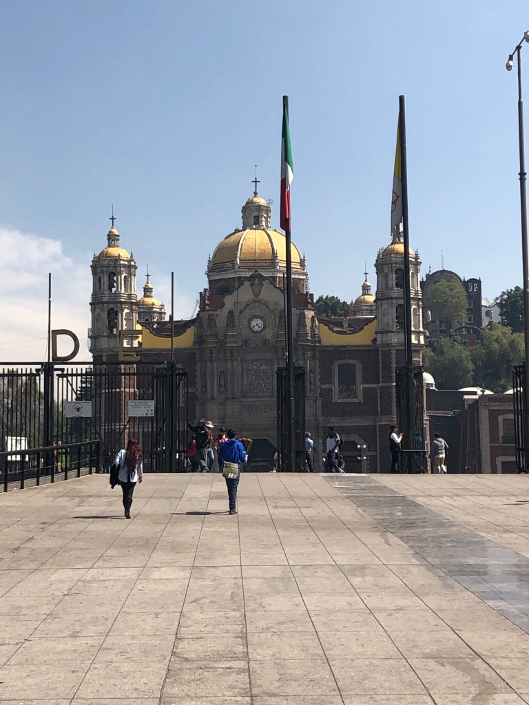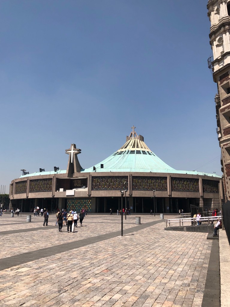The next day I had another guided tour – in the morning we took the metro out to the Basilica of Our Lady Guadalupe in the north of Mexico City. The site contains the Old Basilica and a Modern Basilica which was built in the 1970s as the Old Basilica was sinking due to the terrain on which CDMX is built. Following repairs, the Old Basilica is still open to the public to visit but the masses are mainly held in the Modern Basilica which can hold up to 10,000 people.