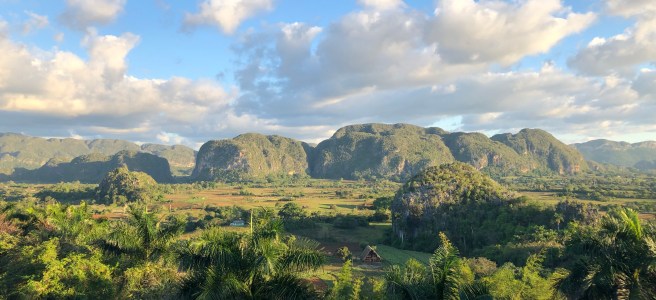 The next morning was an early start as we had a long travel day from Viñales in the west of the country, to Cienfuegos on the southern coast, towards the centre of the island. On the way out of Viñales valley, we stopped off at a wonderful viewpoint. With the blue skies it really looked like a landscape out of pre-history.