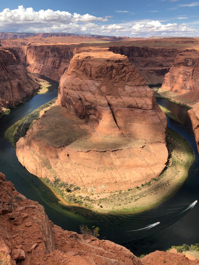 It is a fabulous example of how rivers meander, and really is horseshoe-shaped. The colours, yet again, were amazing. The mixture of the blues/greens of the water with the orange and red of the rocks was perfect. I was really glad we were able to make this stop-off. Last time I was in this part of the US in 2016 we didn’t see it and I was really pleased to make up for that this time round.