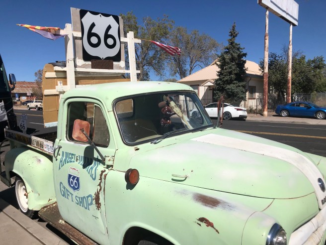 We left Vegas the next morning and headed towards the Grand Canyon. We drove right by the Hoover Dam but did not stop to see it – a missed opportunity. We carried on towards Seligman for lunch. Seligman is on the historic Route 66 which meant a good photo opportunity: